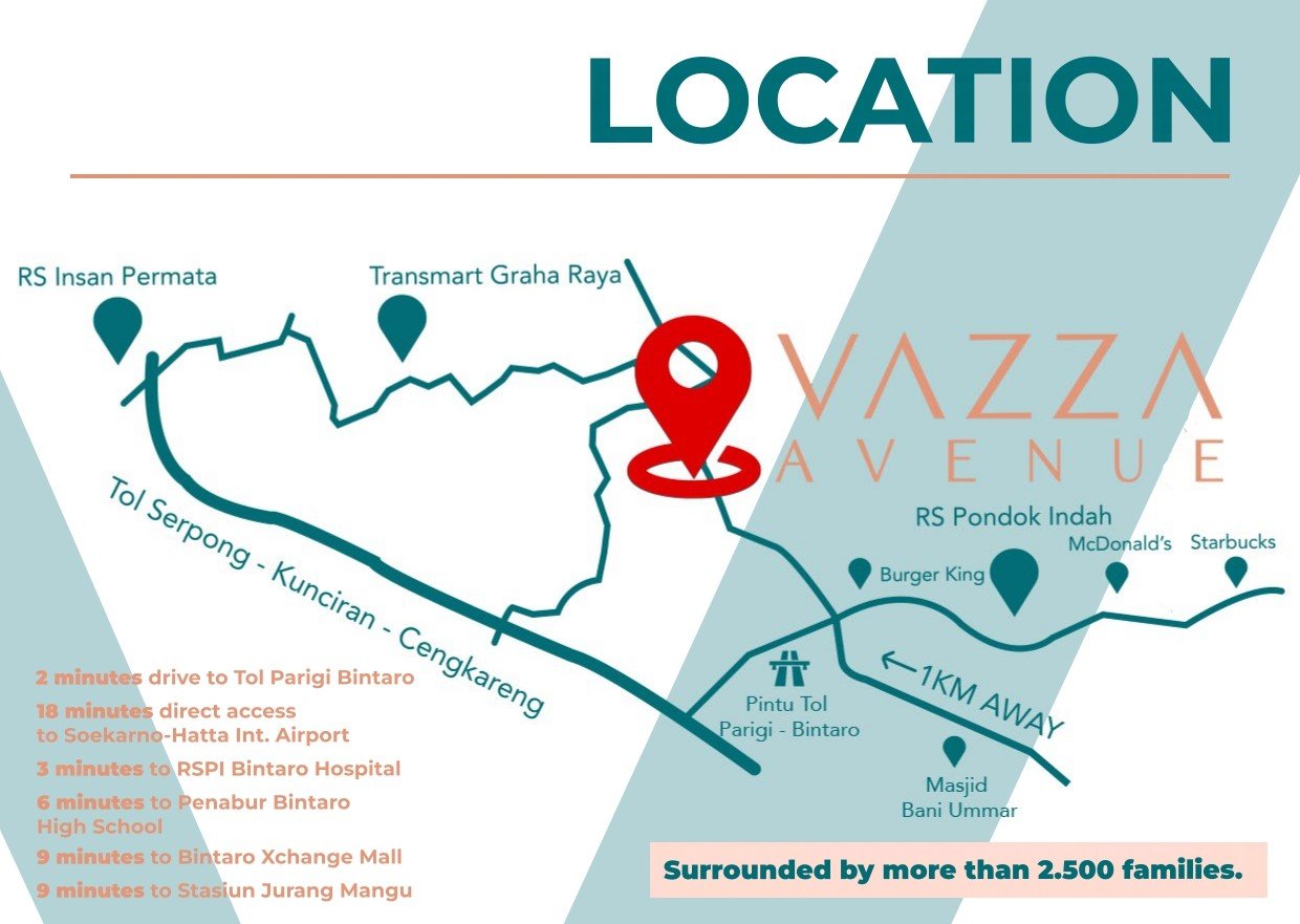 Vazza Avenue Graha Raya merupakan ruko premium di jalur utama Graha Raya Bintaro dengan traffic tinggi dan visibilitas maksimal, dikelilingi kawasan hunian elit serta berbagai fasilitas gaya hidup dan komersial kelas atas. Berlokasi hanya 2 menit dari Tol Parigi, ruko ini kini hadir semakin menarik dengan kemudahan KPR DP 0%, didukung Free PPN 100% serta bebas biaya surat-surat, menjadikannya pilihan ideal untuk mengembangkan usaha sekaligus investasi di lokasi strategis yang terus bertumbuh